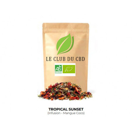 Infusion au chanvre mangue coco. Sachet de 35g. Contient 20% de chanvre.